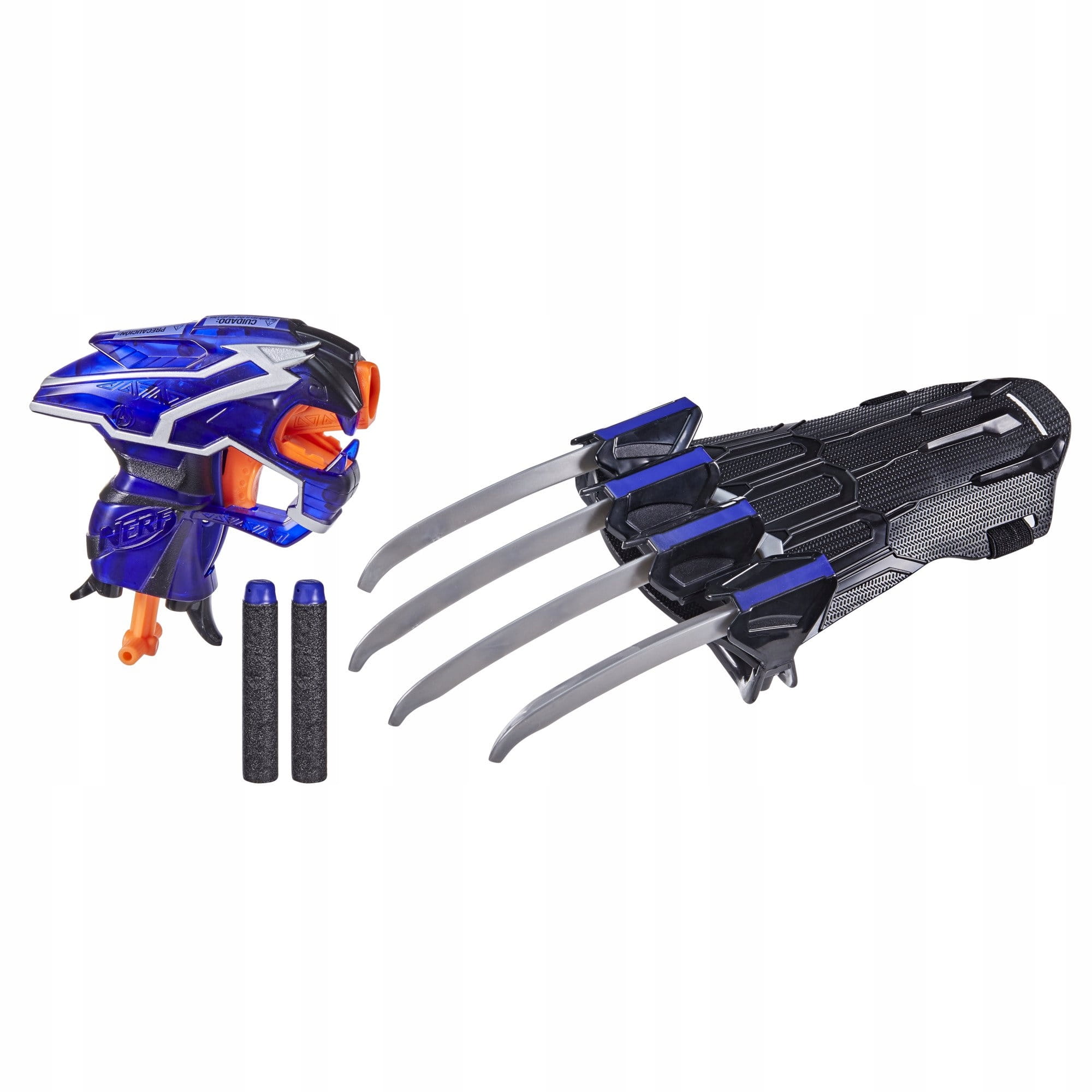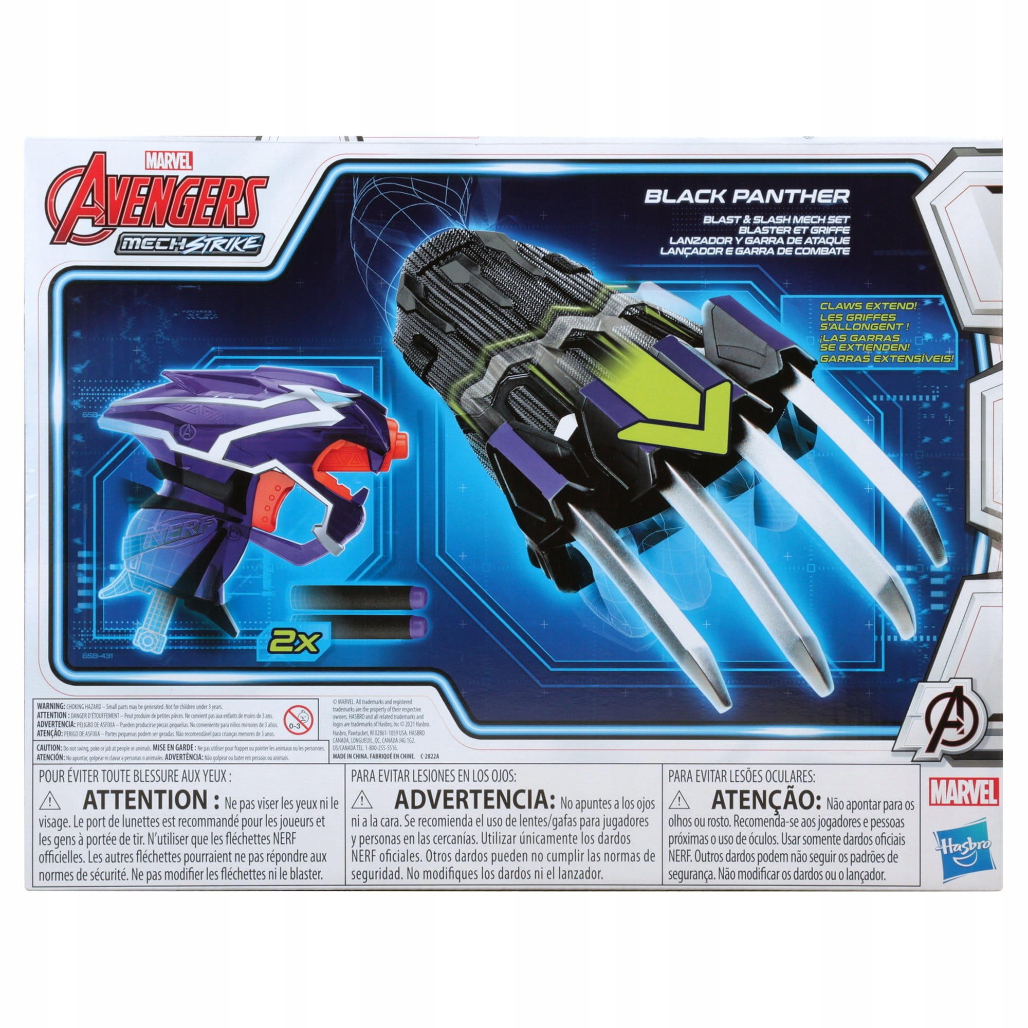 - MECH STRIKE NERF BLASTER: Pokonaj złych złoczyńców, takich jak Czarna Pantera, za pomocą tego miotacza NERF w stylu Mech-Strike i 2 rzutek. Kiedy złoczyńcy tacy jak Thanos upadną, przeładuj NERF Blaster i uderz ponownie! Następnie przełącz się na pazur!