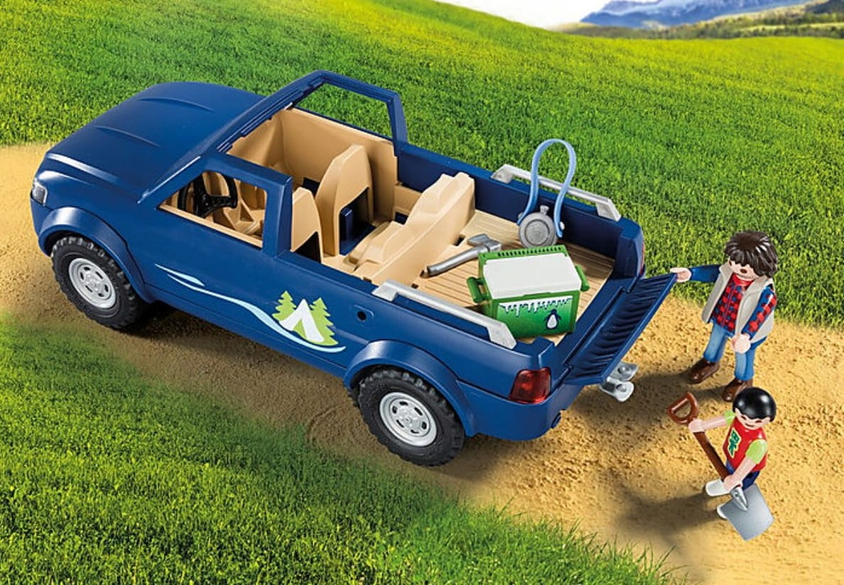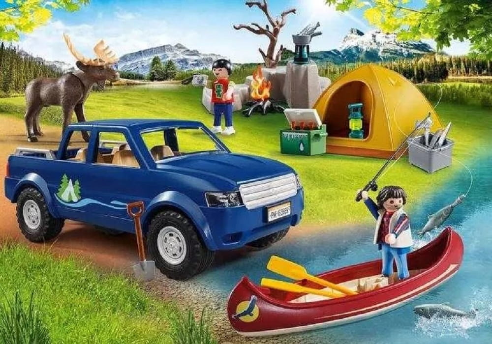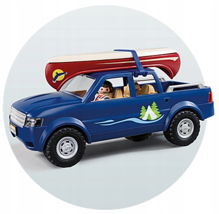- Akcesoria: granatowy samochód typu pickup, czerwony kajak z wiosłami, namiot, wędka, + wiele akcesoriów tematycznych