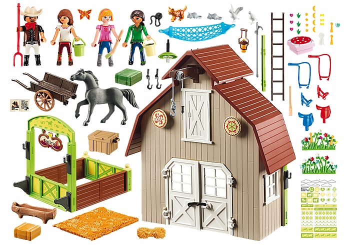 - akcesoria: drabina, hamak, sianko, wodopój dla konia, narzędzia, drobne meble do spotkań, skrzynki, pojemniki i naklejki