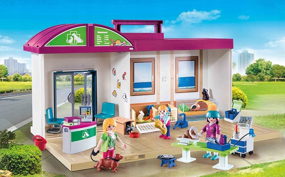Klinika ma różowy dach, ściany ozdobione wizerunkami zwierząt i bardzo bogate wyposażenie. W komplecie znajdziesz aż 80 elementów, które zagwarantują Ci wielogodzinną zabawę. Wśród nich znajdziesz trzy figurki: weterynarza, kobietę i małą dziewczynkę. Ponadto zestaw zawiera figurki zwierząt, m.in. psa, kotka, królika i wiele, wiele innych! Nie może zabraknąć również recepcji, urządzeń służących do badań zwierzątek i innych akcesoriów, które możemy zobaczyć w prawdziwej klinice weterynaryjnej.