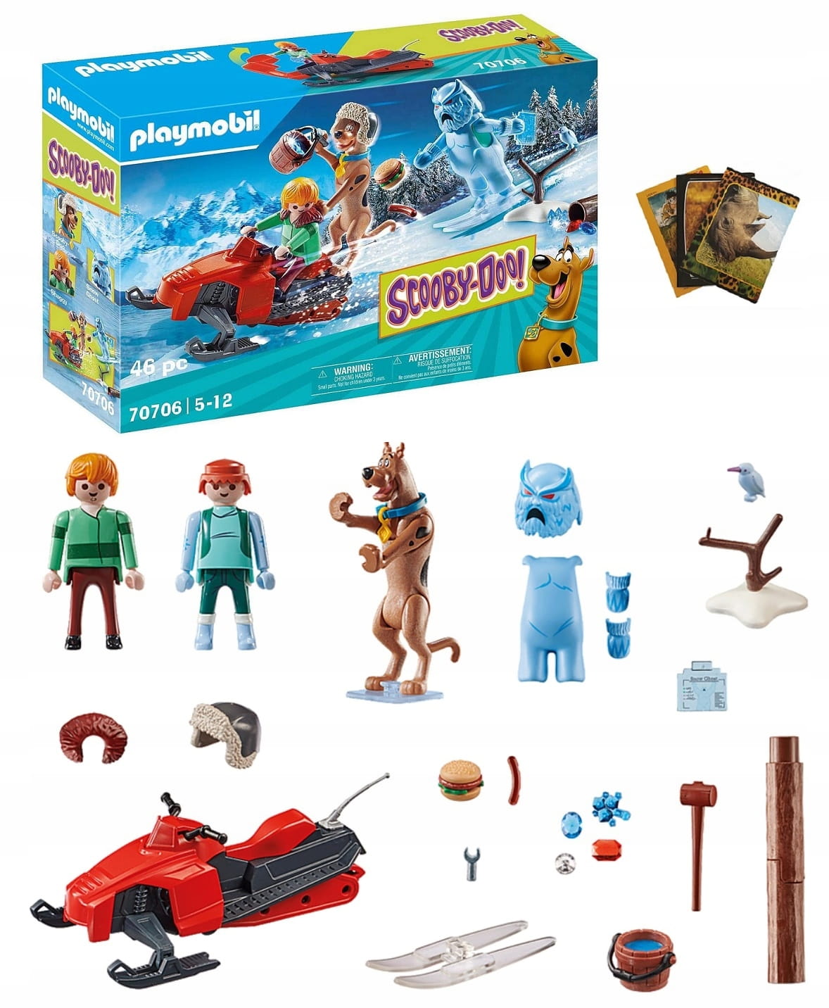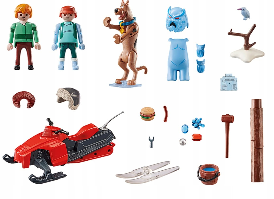 - Akcesoria: 1 skuter śnieżny, 1 para nart, 1 wydrążony pień drzewa, 1 pień drzewa z podstawą, 1 młotek, 1 adapter, 1 wiadro , 1 burger, 1 kiełbasa, 4 klejnoty, 1 karta ducha, dwuczęściowy garnitur od Śnieżnego Ducha; 1 maska Snow Ghost, 1 para rękawic Snow Ghost, 1 czapka zimowa dla Scooby'ego, 1 obroża dla psa, 1 nieśmiertelnik, 1 obroża, 1 stojak dla Scooby'ego.