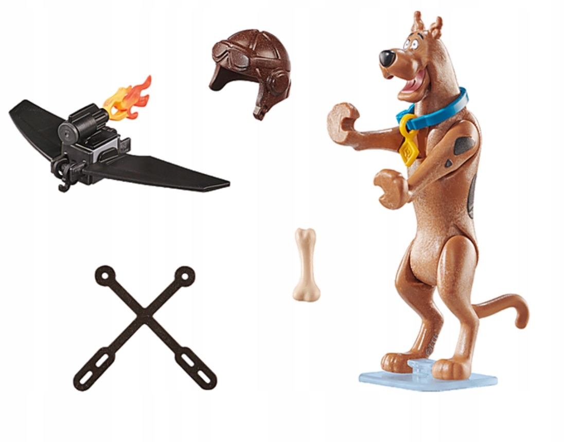 - Akcesoria: 1 plecak lotniczy z płomieniem, 1 kask pilota, 1 kość, 1 obroża dla psa, 1 nieśmiertelnik, 1 stojak na Scooby, 1 naklejka kolekcjonerska.