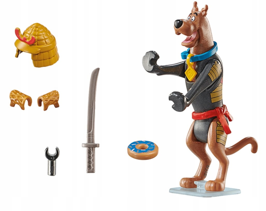 - Akcesoria: 1 nakrycie głowy samuraja, 2 kajdanki, 1 pas ze sztyletem, 1 miecz samurajski, 1 pączek, 1 obroża dla psa, 1 nieśmiertelnik, 1 stojak na Scooby, 1 naklejka kolekcjonerska.