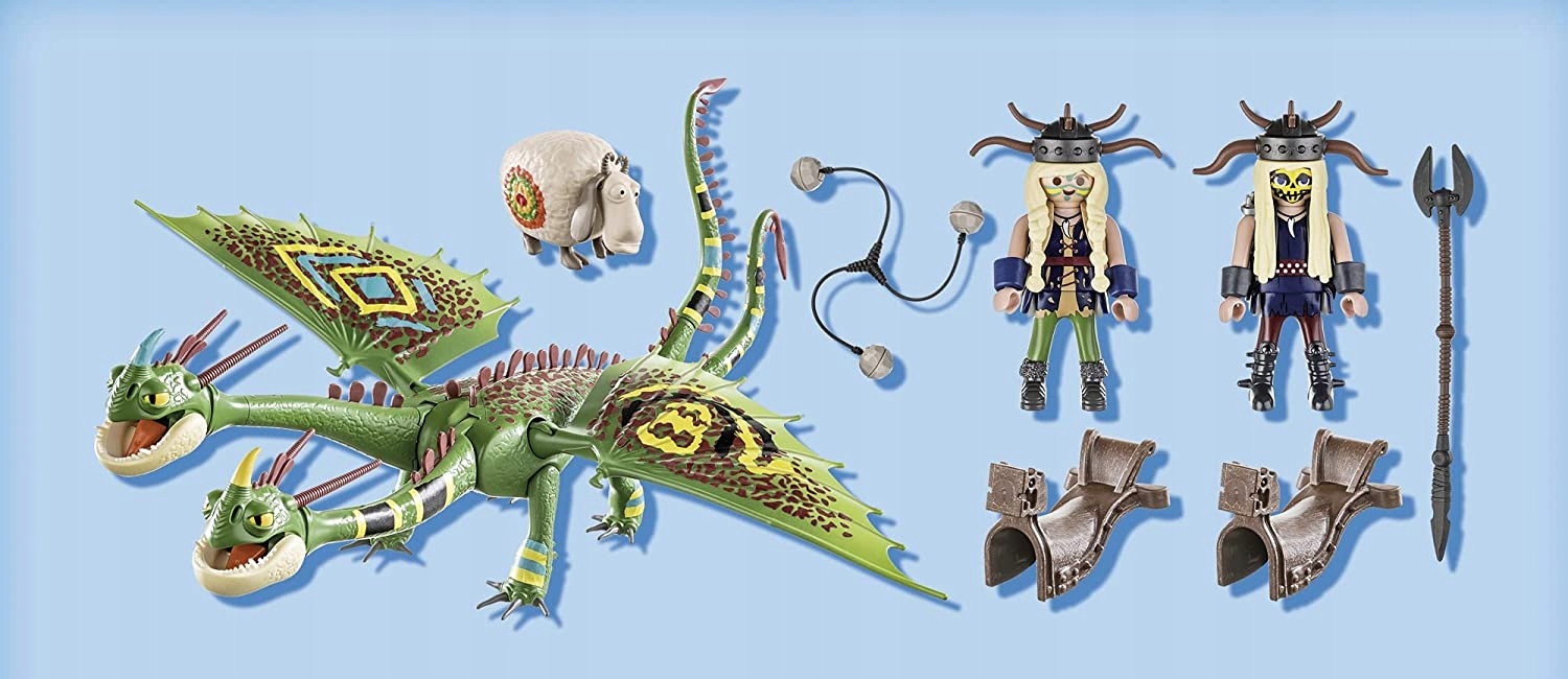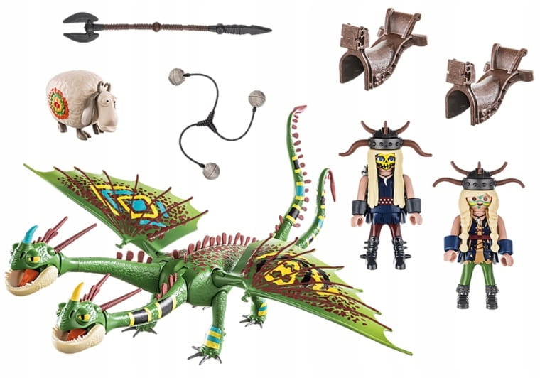 Jeśli bliźniacy wdają się w kłótnię, łachmany naprawdę latają. Ale jeśli chodzi o to, to są dobrym zespołem. Kłótliwe bliźniaki mają u boku smoki szpadke i mieczyka. Specjalnością tego typu latawca są dwie główki. Jednak w przeciwieństwie do swoich jeźdźców głowy dobrze ze sobą współpracują, tylko od czasu do czasu dają się zarazić kłótnią bliźniaków. Wszyscy bohaterowie również mają nowy, kolorowy wygląd i entuzjastycznie rzucają się do następnego wyścigu latawców. Zestaw do zabawy zawiera bliźniaków Jota i Wym i ze smokami Szpadką i Mieczykiem w strojach wyścigowych, dwa siodła, bolę, włócznię i wiele innych dodatków. Skrzydła smoka są ruchome.
