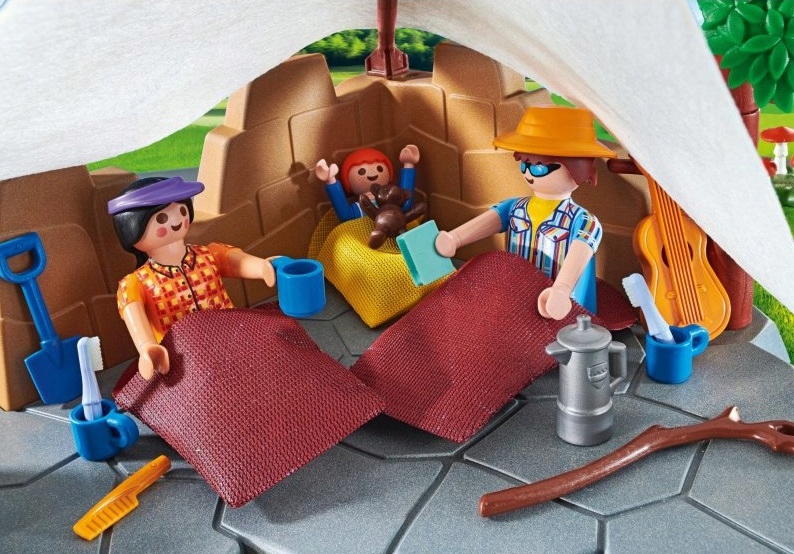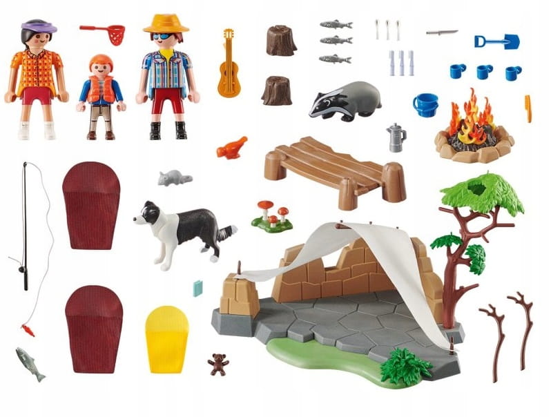 - Akcesoria: 1 koja do spania z płytą podłogową, murem i plandeką, 1 drzewo, 1 trawnik z grzybami, 1 kładka, 1 kominek, 2 pniaki, 2 śpiwory dla dorosłych, 1 śpiwór dziecięcy, 1 wędka, 1 gitara, 2 kije, 1 łopata, 1 kabaretka, 3 szczoteczki do zębów, 1 szczotka, 1 książka, 1 miś, 1 nóż, 3 kubki, 1 wiadro, 1 czajniczek, 3 łyżki, 1 kapelusz, 1 nakrętka.