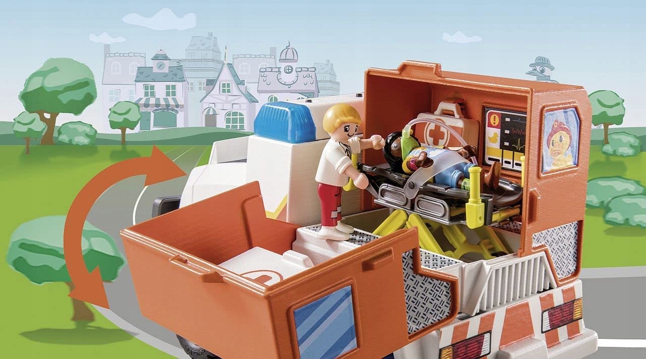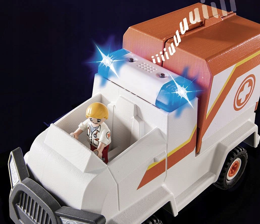 Akcja dla Mikeya Medica! Kolejny wypadek w Playmoville, który pilnie potrzebuje lekarza. Na szczęście Mikey jest przygotowany na każdą awarię dzięki karetce pogotowia. Duzi i mali pacjenci są natychmiast badani na noszach. Mikey jest po prostu najlepszy! Zestaw do zabawy składa się z trzech figurek PLAYMOBIL oraz pojazdu lekarza pogotowia z innowacyjnym uchylnym układem kierowniczym i składanym gabinetem zabiegowym.