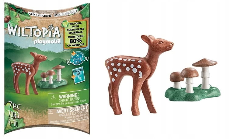 WILTOPIA to pierwsza przyjazna dla środowiska linia produktów PLAYMOBIL, która składa się średnio w ponad 80% ze zrównoważonego materiału. Zestaw zawiera jelonka PLAYMOBIL wraz z akcesoriami, kartę wiedzy o zwierzętach do zbierania i ekscytującą zawartość audio.