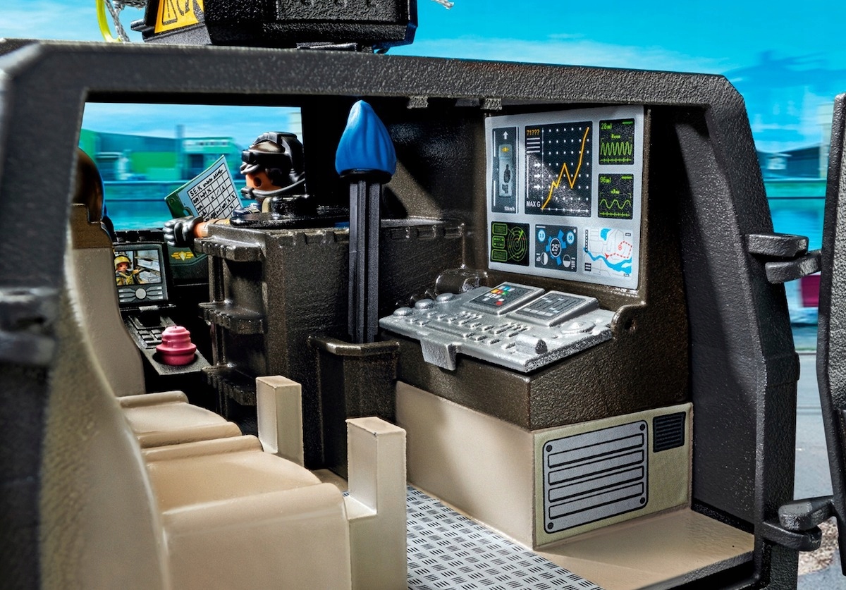 W zestawie znajduje się pojazd terenowy specjalnej jednostki SWAT. Pojazd przeznaczony jest do wyjazdów na specjalne akcje policyjne. Posiada ruchome elementy, zdejmowalny dach oraz otwierane drzwi. Na dachu posiada obrotową wieżyczkę do strzelania harpunem.