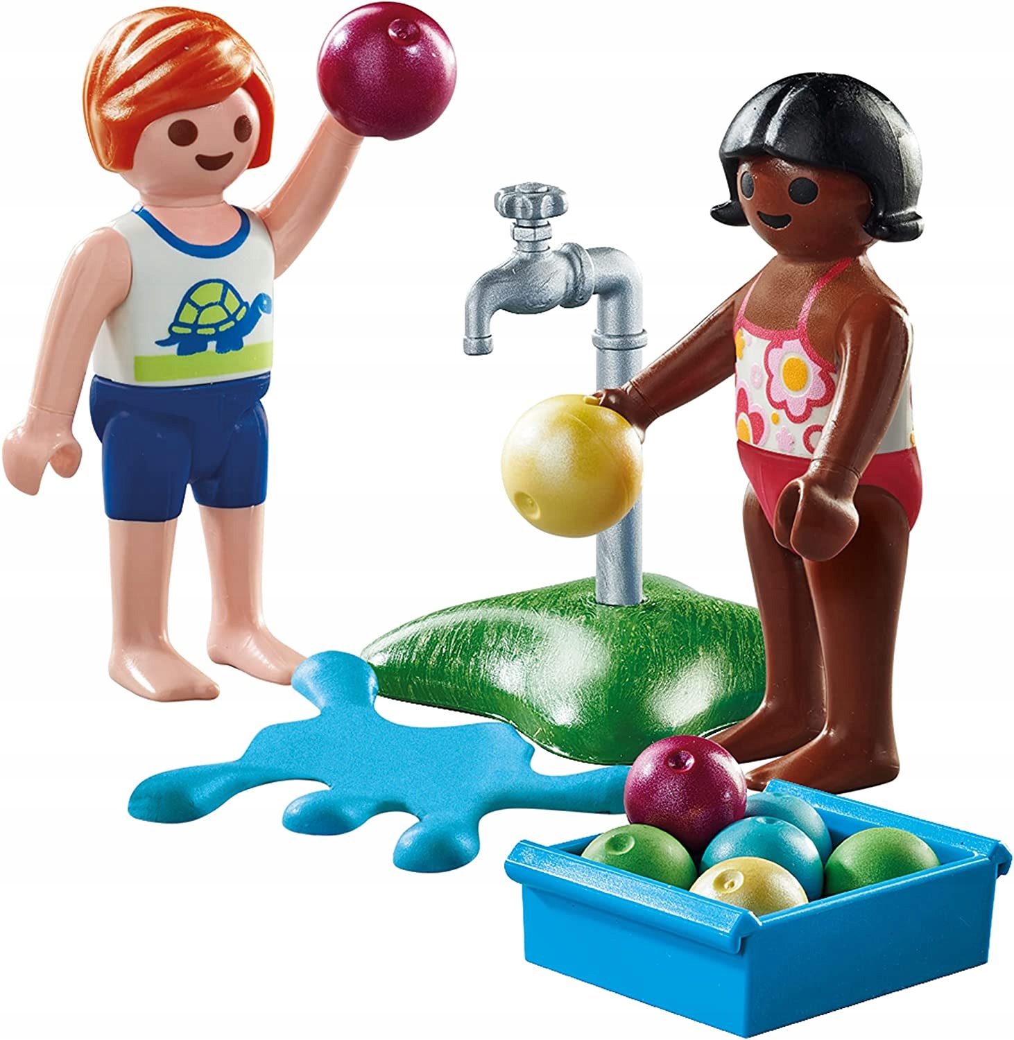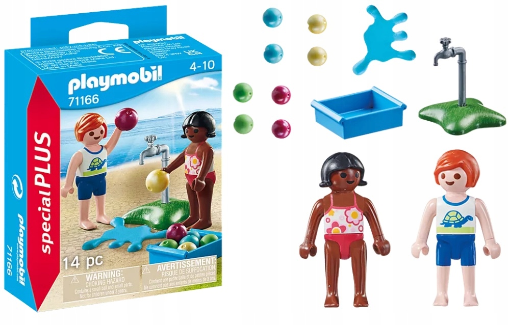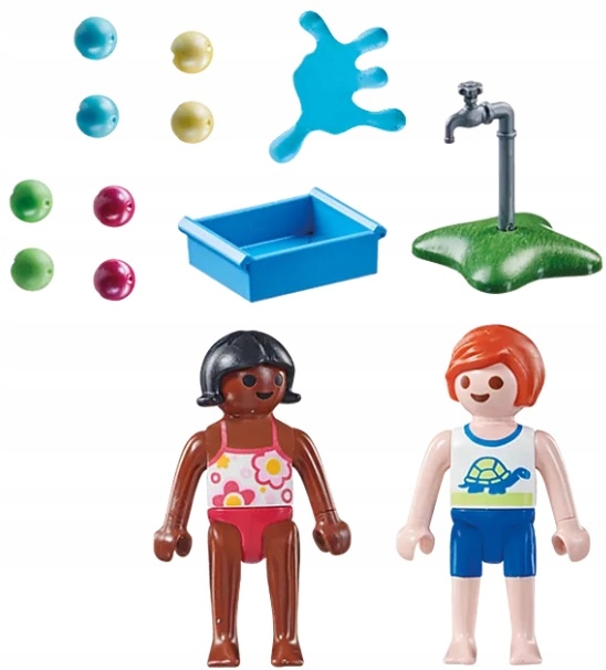 Zestaw Special Plus zawiera dwie figurki dzieci, kran, kałużę wody, pojemnik i osiem piłek plażowych. Balony z wodą można trzymać w rękach dzieci. Figurki PLAYMOBIL Special Plus oferują świetną zabawę z mnóstwem akcesoriów dla dzieci w wieku od 4 lat. Kochającymi figurkami zabawek można bawić się pojedynczo lub łączyć je z innymi światami tematycznymi PLAYMOBIL.