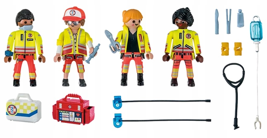 Ekipa ratunkowa PLAYMOBIL z bogatym wyposażeniem do opieki nad pacjentem na miejscu wypadku! Zawiera nową torbę na defibrylator!