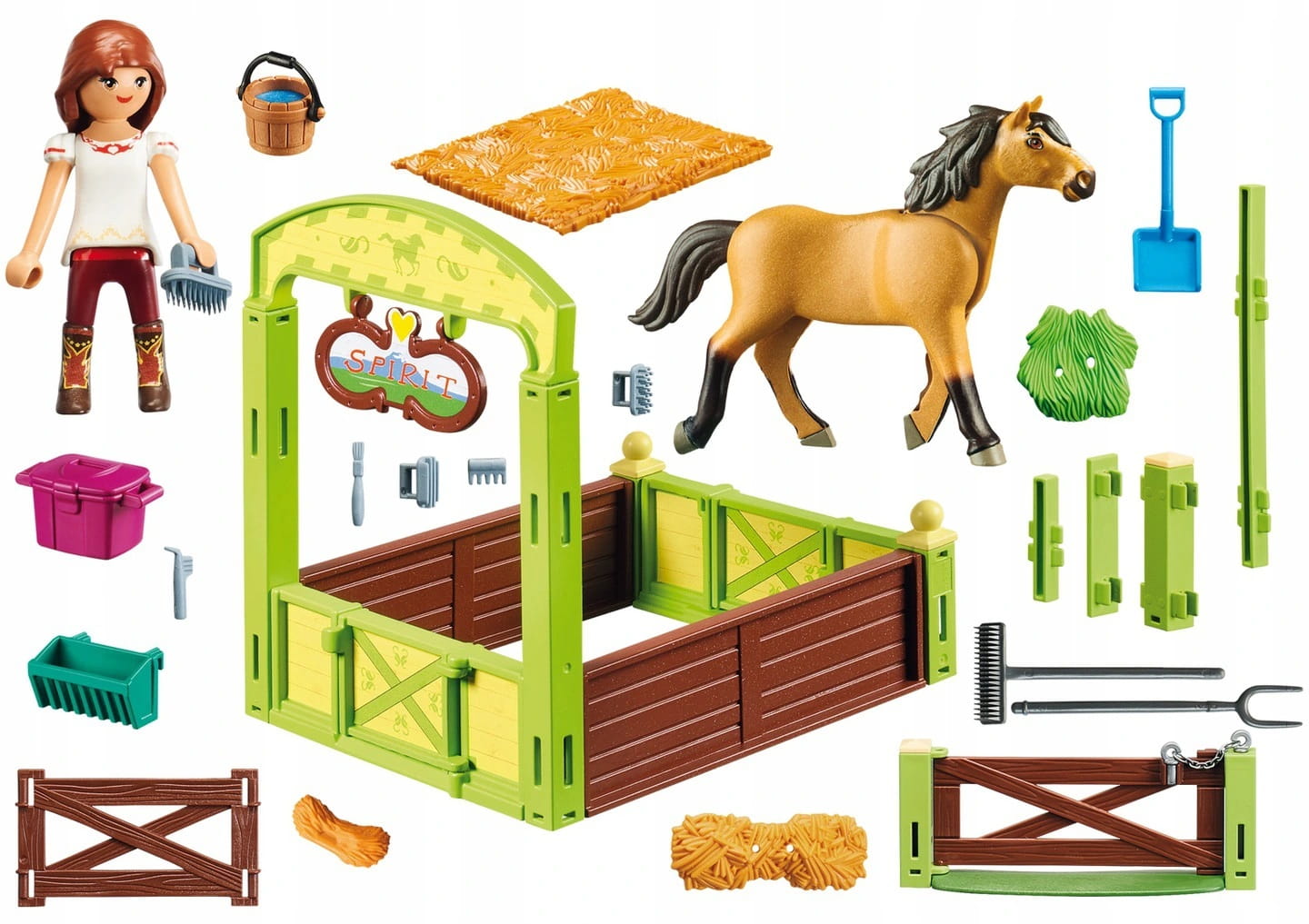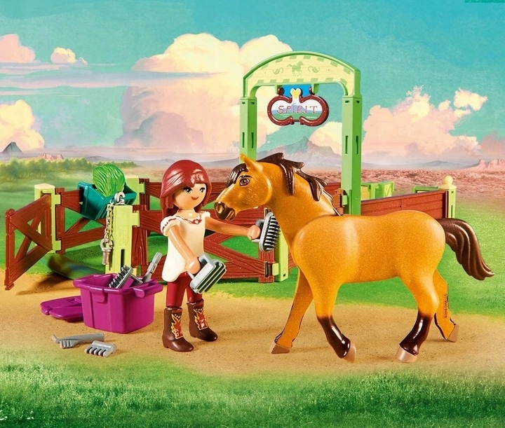 Seria Spirit to zabawki inspirowane dziewczęcą bajką Spirit Riding Free produkcji DreamWorks. To historia 12-letniej dziewczynki Lucky, która niedawno przeprowadziła się do małego wiejskiego miasteczka i tu razem ze swoim koniem o imieniu Spirit poznaje nowych przyjaciół. Twórz dla bohaterki nowe historie w pięknych ranczach i wiejskich domkach!