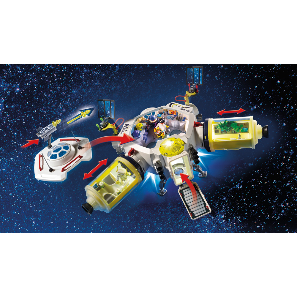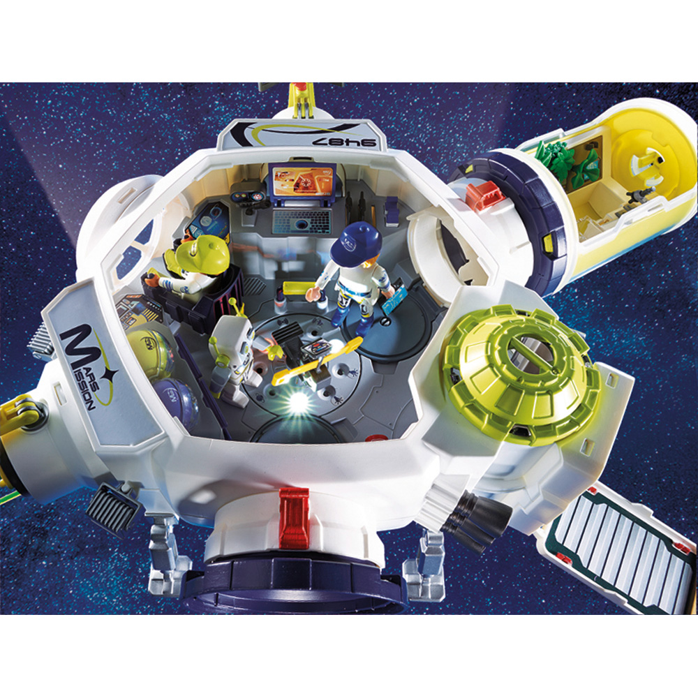 Na zewnętrznej stronie stacji znajdują się cztery wejścia dla następujących modułów: dwa duże do spania i laboratoryjnych eksperymentów (dostępne w zestawie), a także dla dwóch mniejszych modułów, które nie są dostępne w zestawie, z artykułu 9488 Rakieta kosmiczna z rampą startową oraz z artykułu 9490 Niszczyciel meteoroidów.
