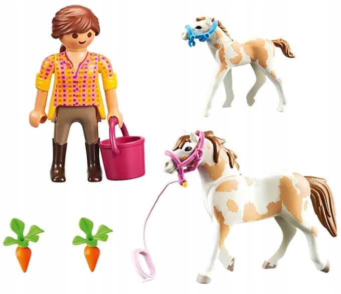 Wtedy ten koń i źrebak zdecydowanie powinni się wprowadzić. Dwa pięknie zaprojektowane konie-zabawki zapraszają dzieci do pomysłowych przygód konnych. W zestawie kantar na oba konie, do którego można przypiąć linę do woltyżerki. Zestaw składa się z figurki PLAYMOBIL, konia Pinto ze źrebięciem, uzdy, wodzy, wiadra i marchewki.