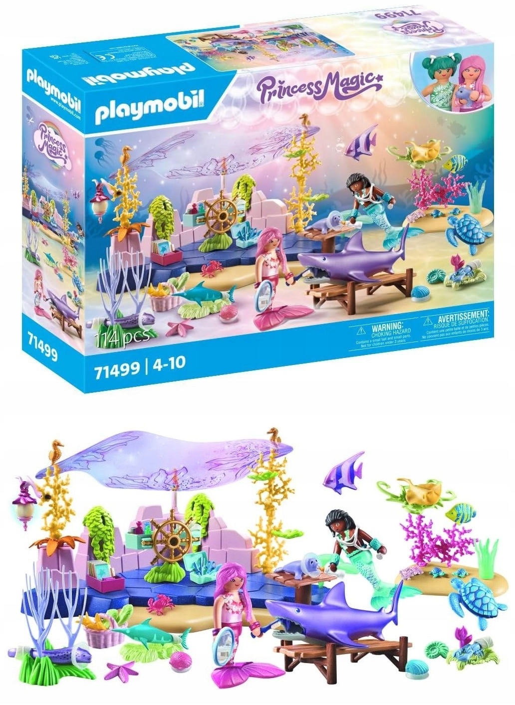 Syrenki troskliwie opiekują się wszystkimi morskimi stworzeniami w swoim królestwie, ponieważ ochrona mórz i ich mieszkańców jest dla nich szczególnie ważna. Szczegółowo zaprojektowany zestaw PLAYMOBIL przenosi dzieci w wieku od 4 lat do czarującego podwodnego świata i zaprasza je do zabawy w odgrywanie ról.