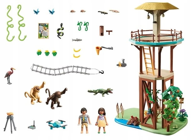 Wieża badawcza jest lekko podwyższona na wzgórzu w pobliżu stacji opieki nad zwierzętami. Stamtąd Palmerowie mają nie tylko wspaniałe widoki na las deszczowy i Amazonkę, ale także Sofia mierzy jakość powietrza i wymianę płynów między drzewami z górnej platformy wieży. Dzięki obrotowej poręczy urządzenia pomiarowe można łatwo ustawić w różnych pozycjach. Stamtąd mierzy się również prędkość wiatru. Dron dołączony do zestawu pomaga Rickowi uchwycić rzadkie małpy wyjce na potrzeby własnych, pamiątkowych filmów. I oczywiście Rick pilnie udostępnia te filmy na wszystkich swoich kontach w mediach społecznościowych. Na dachu wieży badawczej znajduje się odczepiany kompas, który można zabierać na wycieczki i wędrówki.