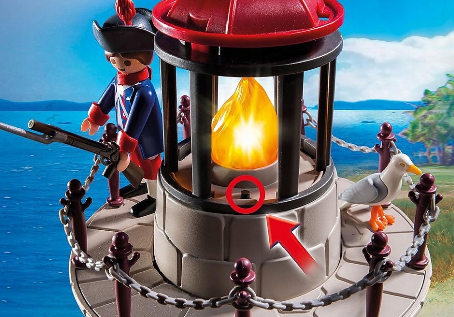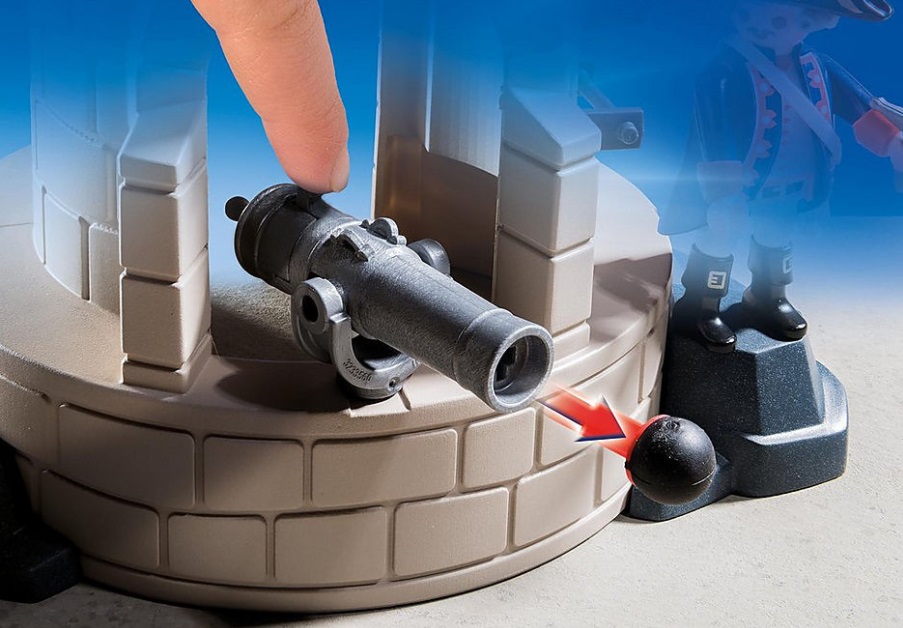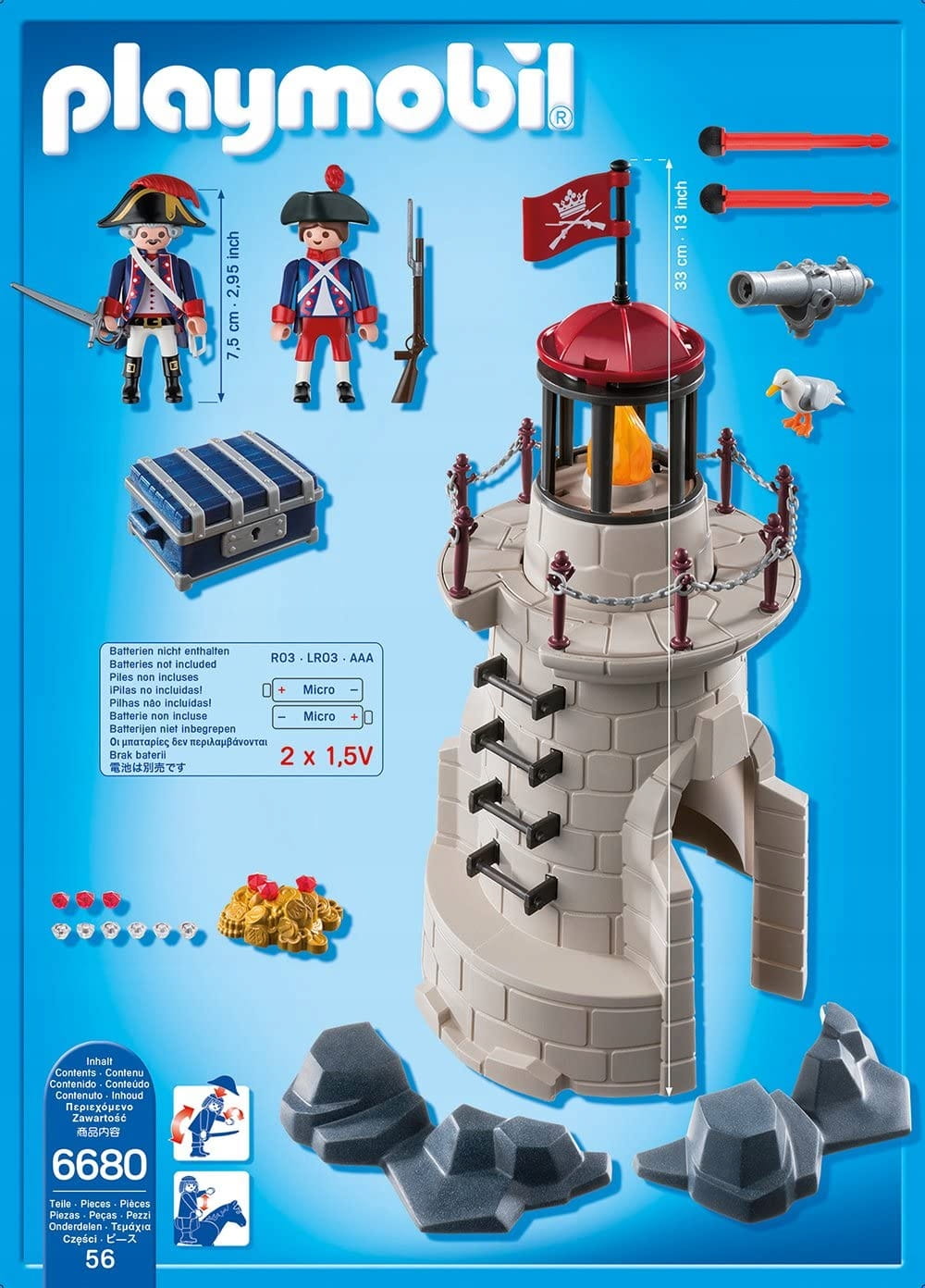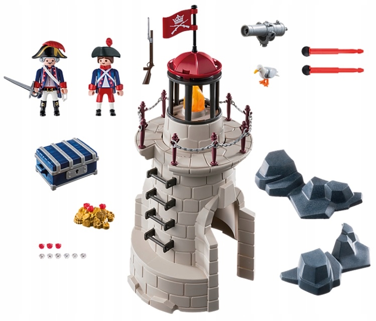 Punkt obserwacyjny żołnierzy pełni kilka funkcji: jego latarnia służy statkom do orientacji, armata odstrasza chciwych piratów, a także jest kryjówka dla złotego skarbu. Pomimo armaty piraci raz po raz atakują i próbują przejąć skarb, ale żołnierze zrobią wszystko, aby temu zapobiec. Zestaw zawiera dwie figurki PLAYMOBIL, mewę, wieżę żołnierską z latarnią morską (baterie nie wchodzą w skład zestawu), skrzynię ze skarbem, karabin, miecz, różne lekkie kamienie i inne dodatki.