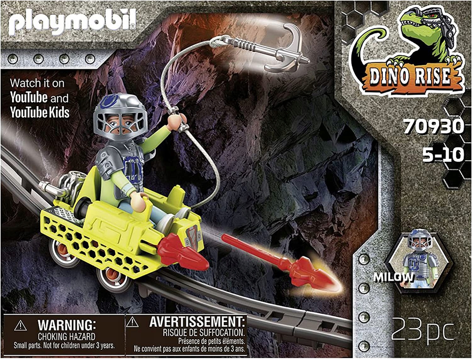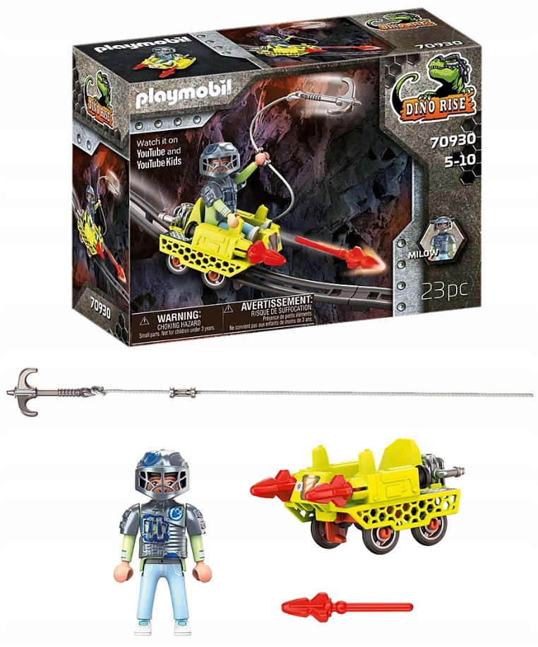 Zestaw zawiera Milow z Team Dino Rise w pełnej zbroi, krążownik minowy z funkcją strzelania i trzema pociskami oraz inne świetne dodatki. Min cruiser można łączyć z pojazdami szynowymi z innych zestawów Dino Rise (70925 i 70929).