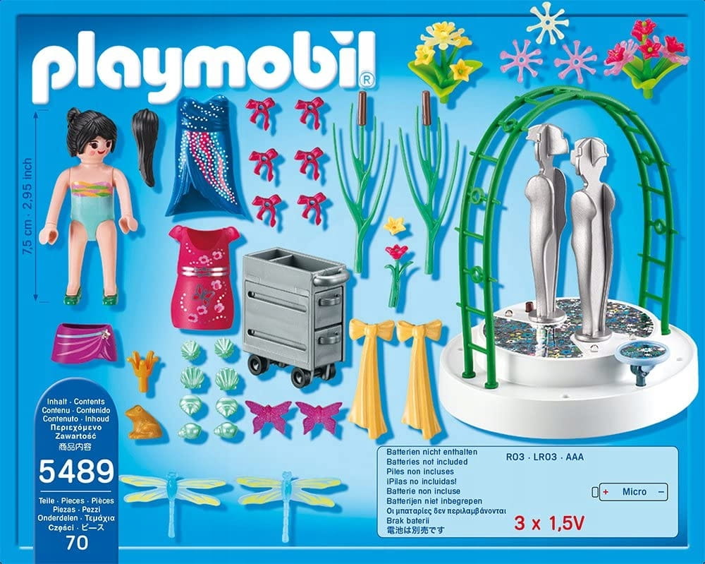 Dekoratorka na ledowym podeście 5489 marki Playmobil to wspaniałe stoisko sklepowe, oświetlone lampkami LED oraz udekorowane pięknymi ważkami, kwiatkami, muszelkami itp. Doświadczony dekorator może ubierać w dowolny sposób dwa ustawione obok siebie na podeście manekiny.