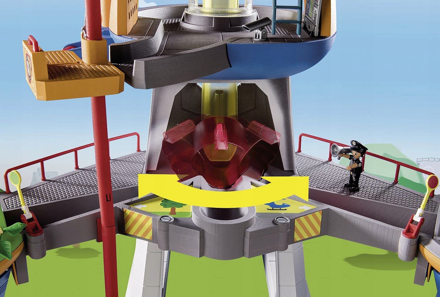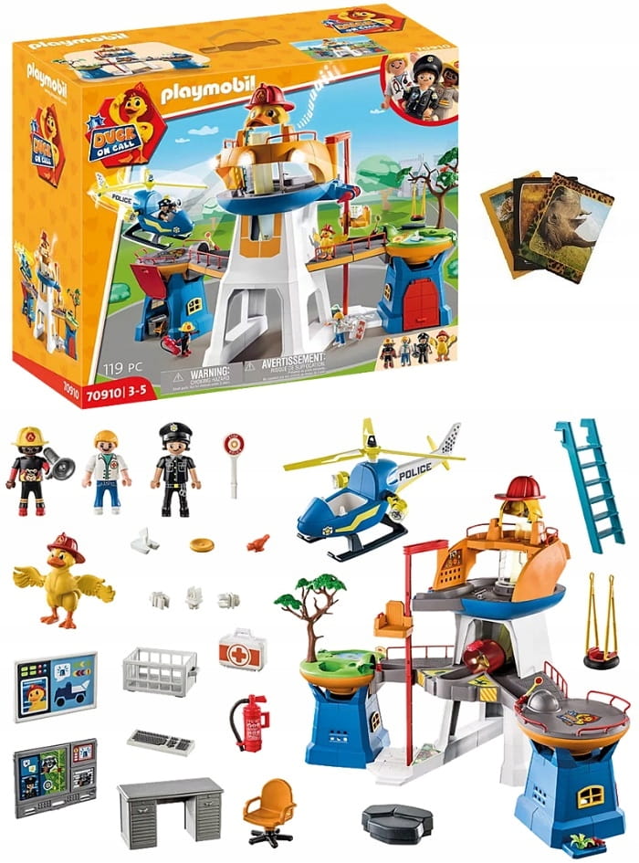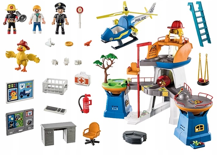 - Akcesoria: 1 kwatera główna z modułem światła i dźwięku oraz zjeżdżalnia, winda i plac zabaw, 1 helikopter policyjny z reflektorami, 1 drzewo z huśtawką, 1 biurko, 1 krzesło, 1 monitor, 1 skrzynia, 1 kryjówka, 6 kombinacji roślin, 1 Tarcza, 1 gaśnica, 1 megafon, 1 klawiatura, 1 apteczka, 1 kielnia policyjna, 1 łódź do zabawy, 1 frisbee.