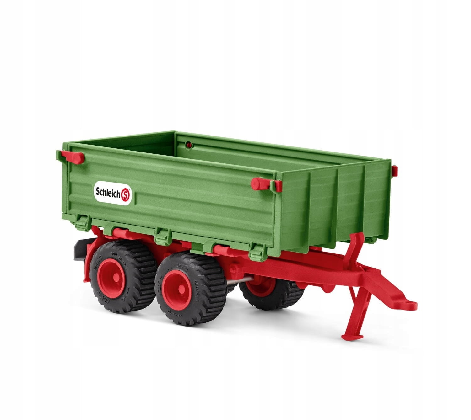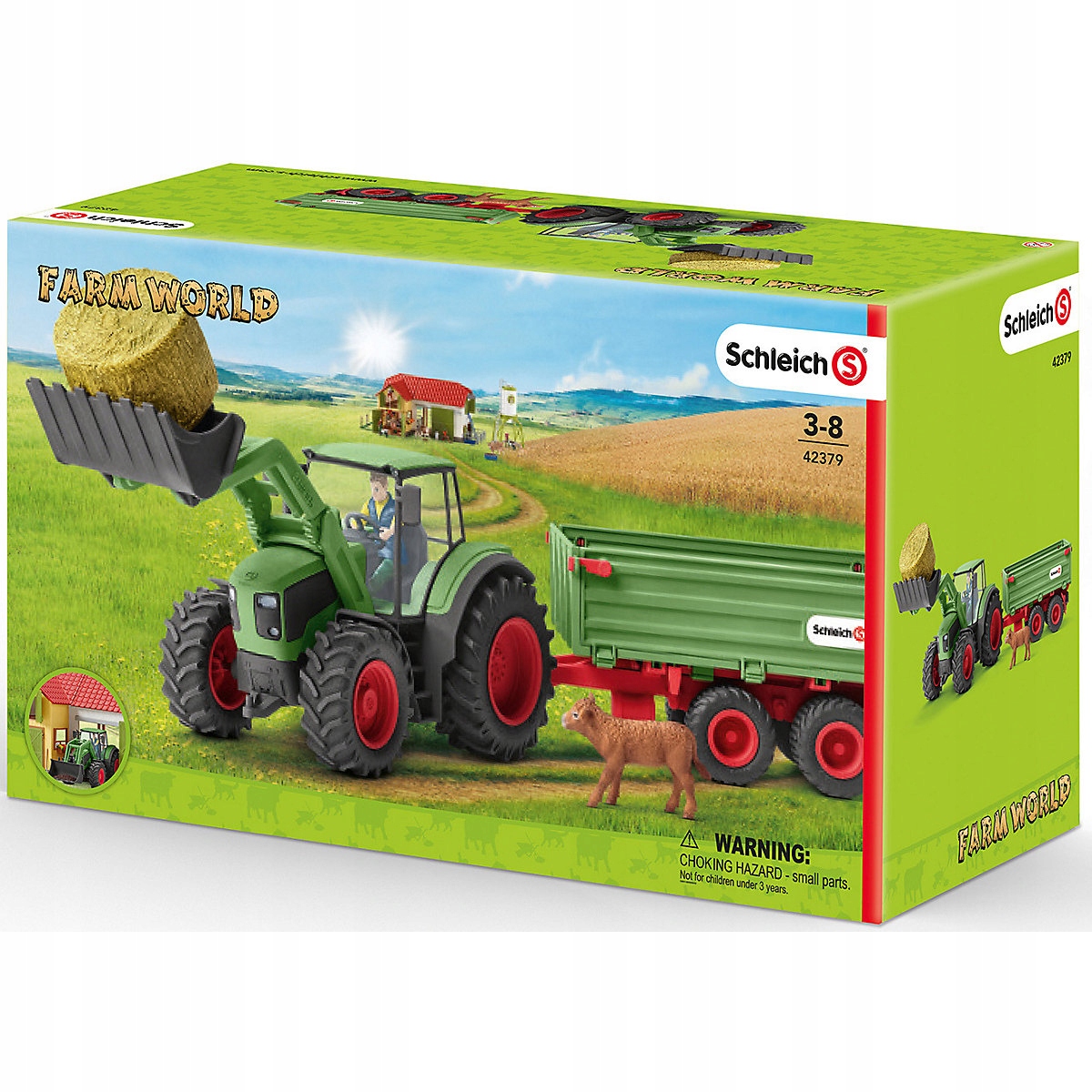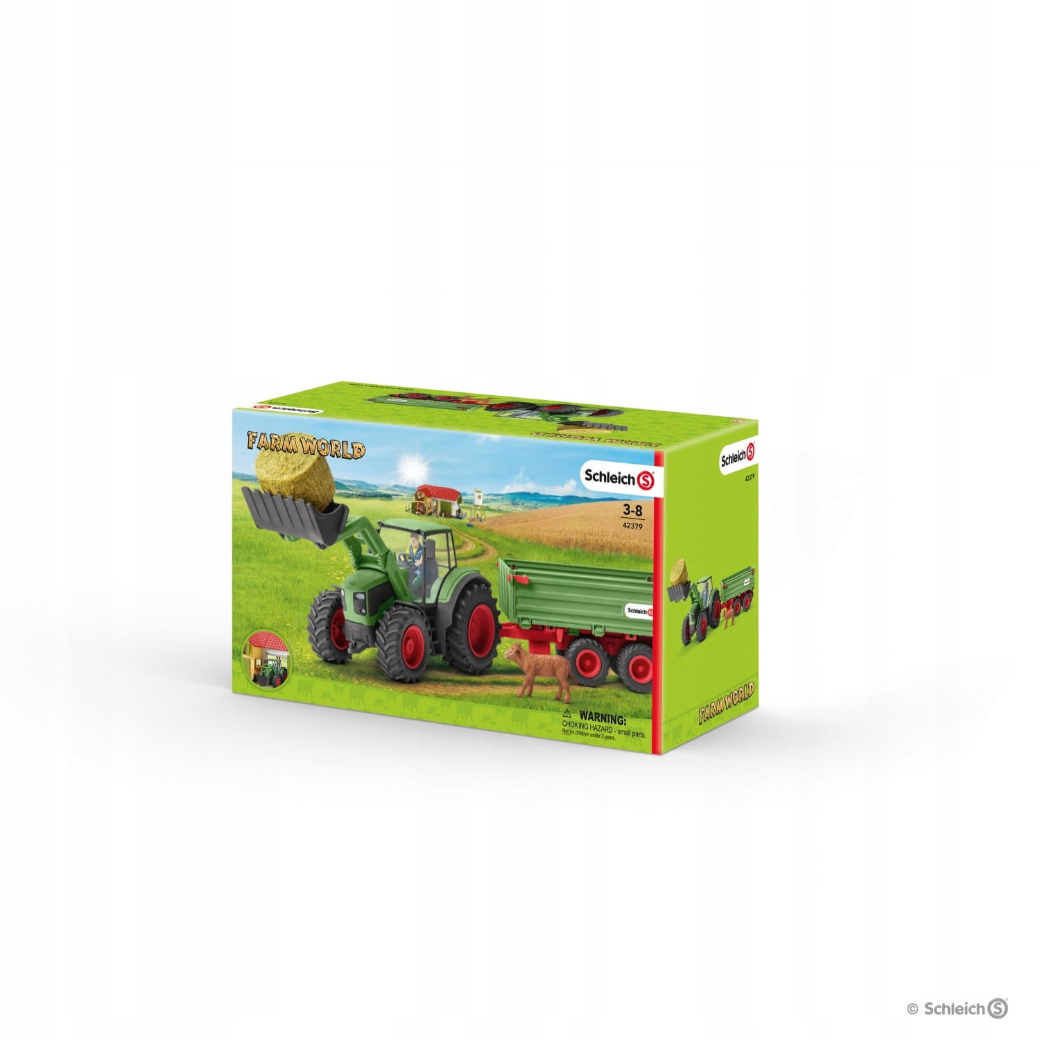 Idealny dodatek do świata gry farmy Schleich®! Ciągnik może przejechać przez bramę farmy (nr kat. 42333), a przyczepa mieści się pod silosem (nr kat. 41429) aby napełnić ją paszą.