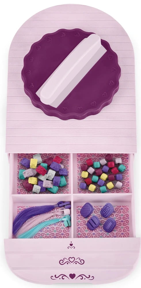 przyjęcie w stadninie, urodziny konia lub pierwszy dzień w szkole dla najmłodszego źrebaka — Salon Piękności z serii schleich® HORSE CLUB Sofia's Beauties oferuje wszystko, czego może potrzebować właściciel stadniny. Pracownia pozwala idealnie dopasować każde akcesorium do nowego właściciela. Dzięki temu zarówno źrebaki, jak i sportowe kucyki oraz imponujące ogiery mogą z dumą prezentować nowe stroje na podium. Pod spodem znajduje się szuflada, w której można przechowywać akcesoria do włosów, spinki i koraliki. Czy wiesz, że możesz łatwo zmienić oraz uczesać grzywę i ogon każdego konia? Nieźle, co? A po tym całym pozowaniu zwierzęta zasługują na dużo świeżego siana w przytulnej poczekalni.