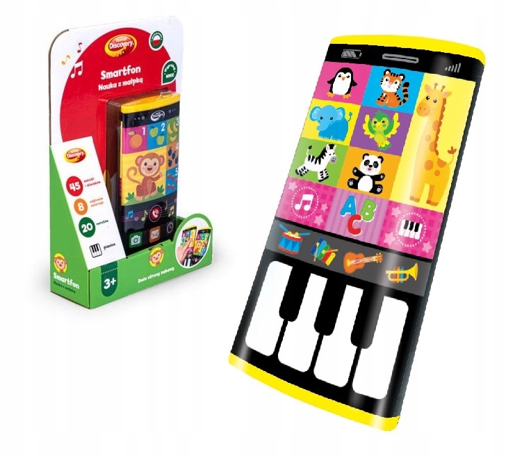 Pianinko? Owoce? Cyferki? Zwierzątka? A może wszystko naraz? W tym dwustronnym smartfoniku maluszek znajdzie wiele dźwięków i zwrotów, które pomogą mu nauczyć się pierwszych słówek! Na małych spryciarzy czekają też wesołe melodie oraz gra w odpowiadanie na pytania małpki, poprzez naciskanie odpowiednich obrazków