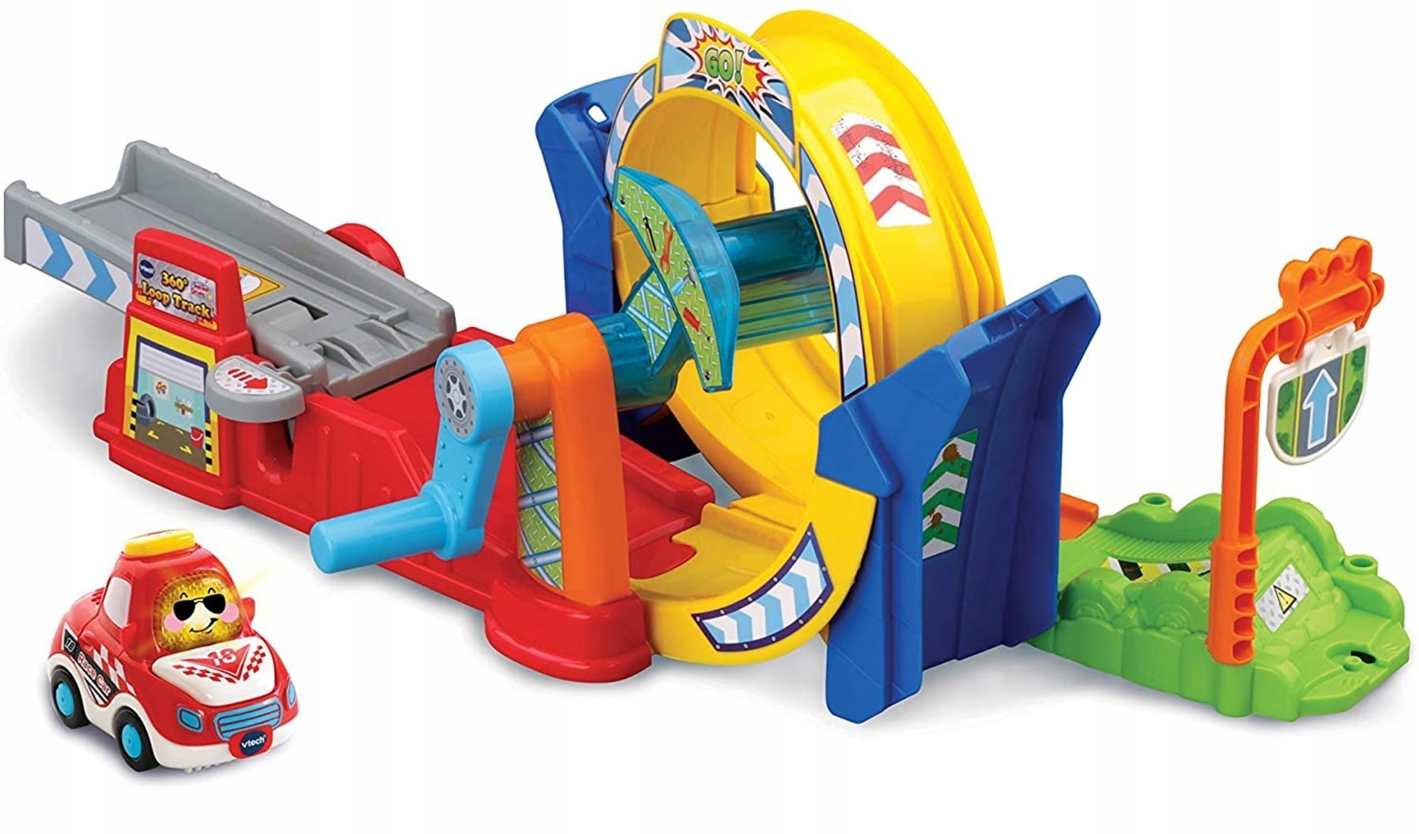 Wyrusz po przygodę i wypróbuj pętlę 360! Wjedź na tor, a następnie obróć uchwyt, aby zakręcić autkiem w pętli! Gotowy? Przebuduj tor w pagórkowatą drogę i spróbuj jeszcze raz!