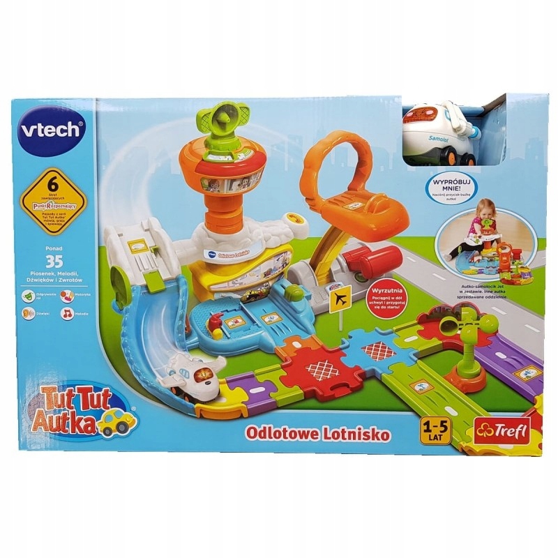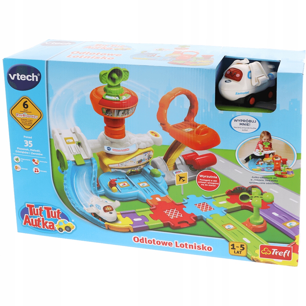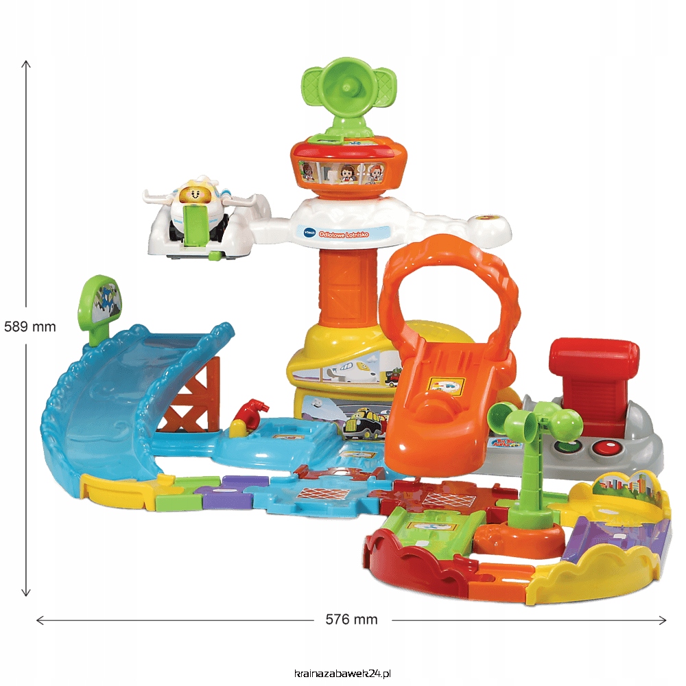 Marzysz o szalonych wakacjach? Odlotowe Lotnisko już czeka! W skład zestawu od marki Vtech wchodzą tory połączone ze stacją lotniska, samolot i… wyrzutnia! Dzięki niej możesz wysłać samolot w podniebną podróż! Wow! Widać nawet chmury! A teraz pora na lądowanie. Jak to zrobić? Nie martw się, Odlotowe Lotnisko jest wyposażone w specjalny, interaktywny radar. Wystarczy przekręcić go w prawo. Udało się! Samolot bezpiecznie wylądował. Co powiesz na kolejną podróż? Jedno jest pewne: ta elektroniczna zabawka zapewni wiele niezapomnianych wrażeń!