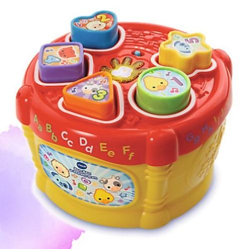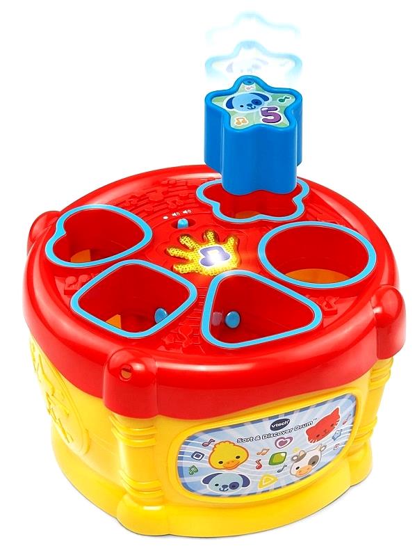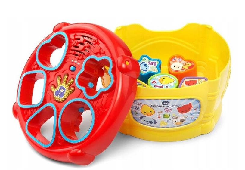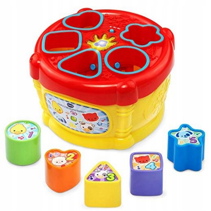 Bam Bam w kształty gram to niezwykle pomysłowa zabawka, które spełnia kilka różnych funkcji. Żółty interaktywny bębenek jest jednocześnie sorterem kształtów z klockami, zabawką muzyczną, na której można grać oraz zabawką interaktywną, która odtwarza ponad 50 piosenek, melodii, dźwięków i zwrotów.
