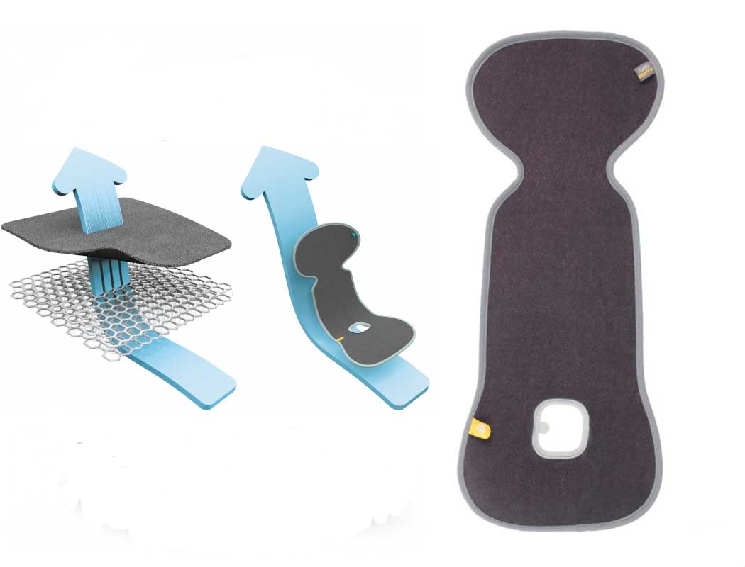 Ochraniacz na fotelik samochodowy zapobiegający nadmiernemu poceniu się dziecka. Miękki ochraniacz ograniczający nadmierne pocenie się dziecka i zabezpieczający fotelik samochodowy. Optymalna cyrkulacja powietrza pozwala na skuteczniejszą kontrolę ciepłoty ciała dziecka.