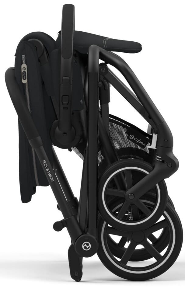 Cybex Eezy S Twist 2 ten model z pewnością wyróżnia możliwość złożenia stelaża razem z siedziskiem - siedzisko schowane jest do wewnątrz, dzięki temu tapicerka spacerówki się nie pobrudzi.