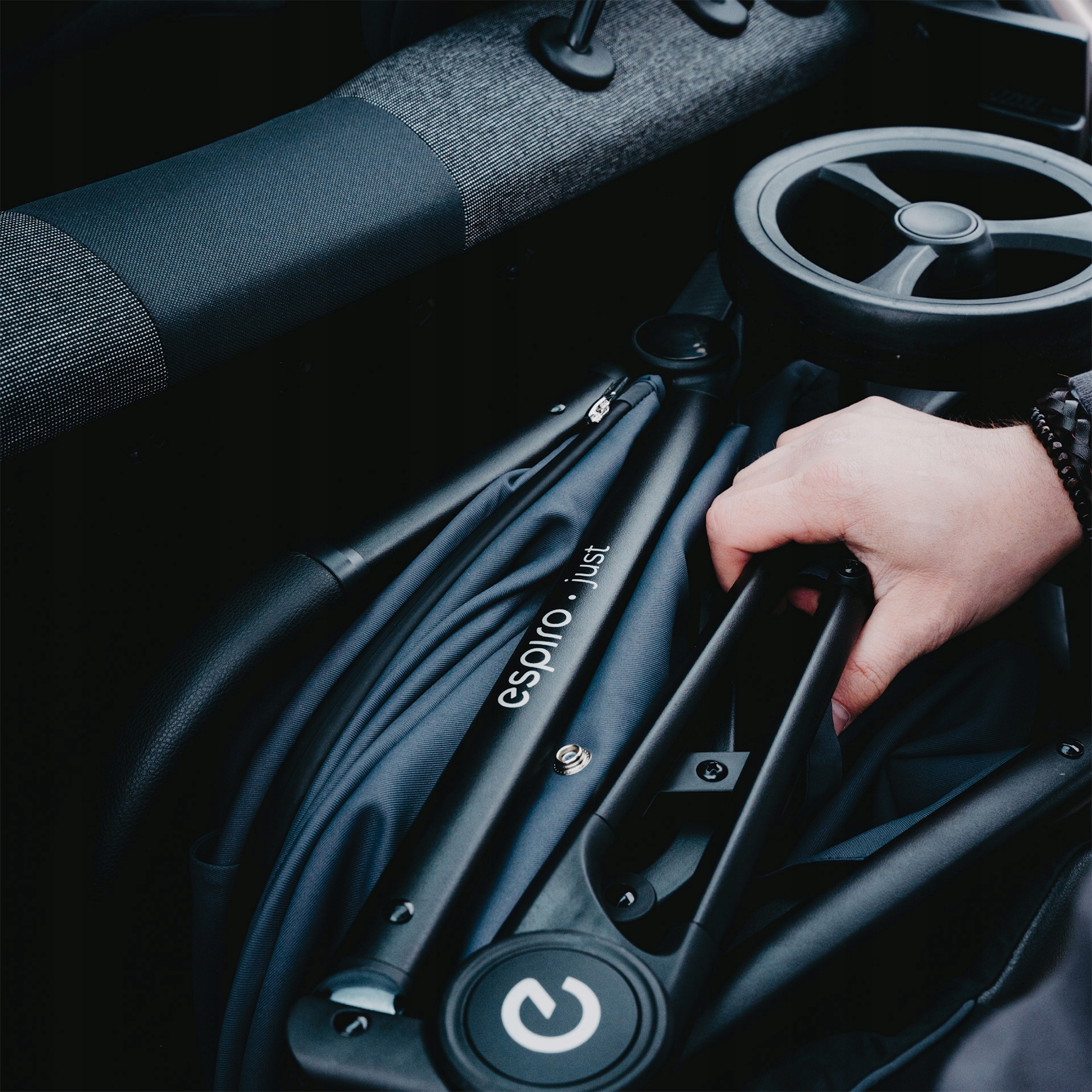Wózek espiro just posiada system automatycznego składania - autofoliding, który umożliwi Ci złożenie wózka jednym ruchem. Jest lekki, co ułatwi Ci jego przenoszenie i podnoszenie. Jego kompaktowe kształty pozwalają przechować go praktycznie w dowolnym miejscu. Jednak mimo lekkości i niewielkich gabarytów, pomieściliśmy w nim wszystko czego potrzebujesz: pełnowymiarowe, wygodne siedzisko z budką, której tylnia część posiada panoramiczną wentylację, pięciopunktowe pasy bezpieczeństwa, które spina magnetyczna klamra, duże koła, praktyczny kosz na zakupy oraz uchwyt na kubek.
