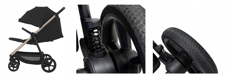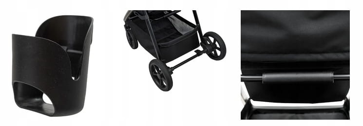 - Praktyczne składanie wózka, które pozwala schować tapicerkę do środka, co ochrania ją przed zabrudzeniem