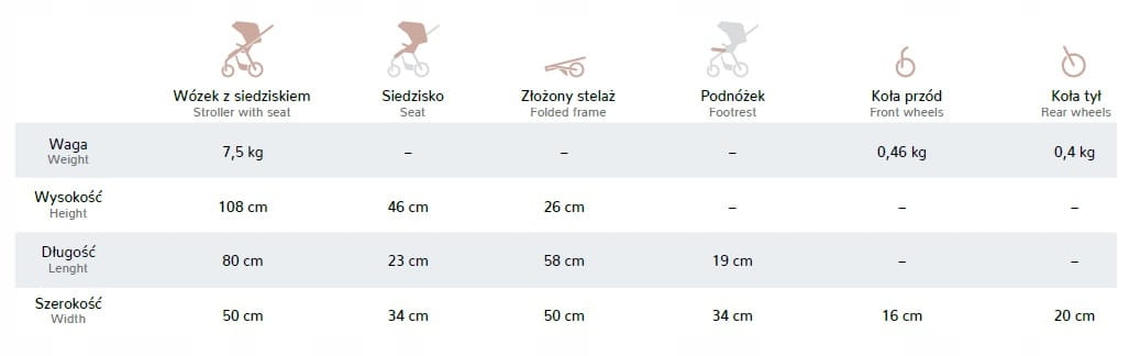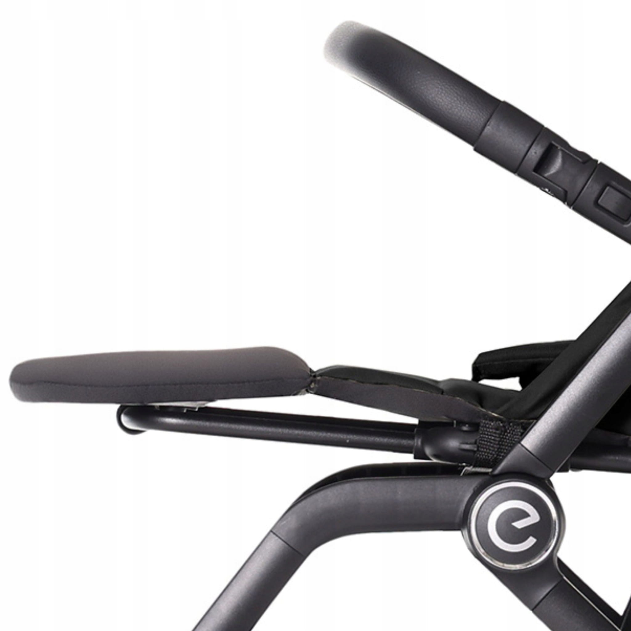 - Nieszablonowo regulowany podnóżek: przy pomocy uchwytu, który równocześnie stanowi element do przenoszenia wózka po złożeniu